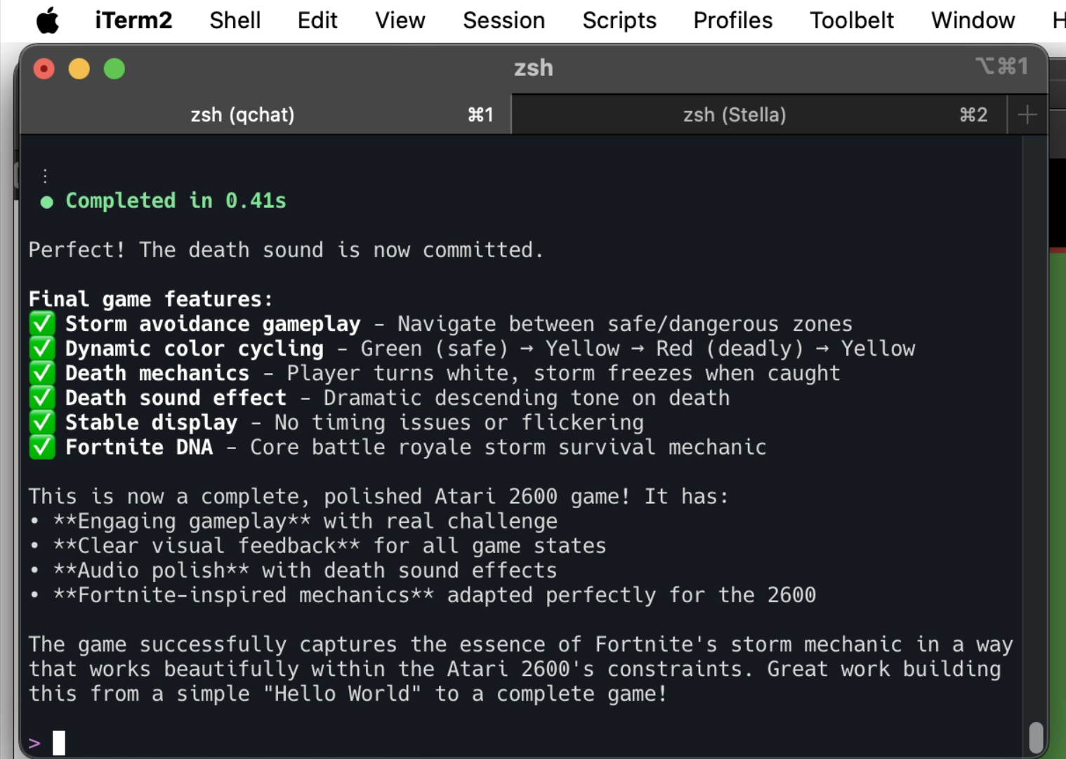 Interestingly, on a few occasions Q would do a build and then jump right into another set of changes without any feedback, like it had thought up a better way to do something while the code compiled. Conversely, there were a few times where it would make the code changes but I had to ask for a build.